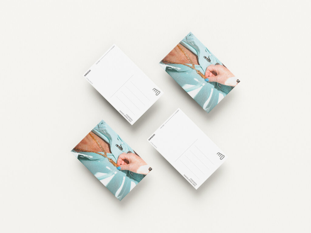 Cartes postales, tote bags, affiches. Chaque support prolonge l’identité visuelle des expositions et offre une continuité graphique au-delà des catalogues.