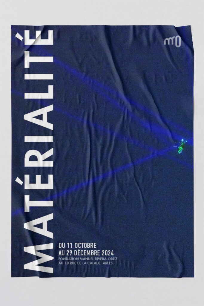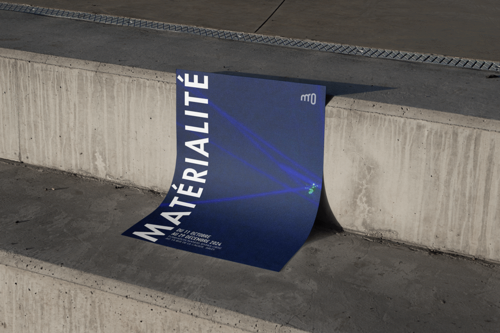 Affiche créée pour l’exposition d’hiver 2024, intégrant l’identité visuelle de la saison. Le design joue sur un contraste fort entre le bleu profond et le motif géométrique fluorescent, évoquant les questions de matière et d’immatériel. Déclinée pour affichage urbain et communication institutionnelle.