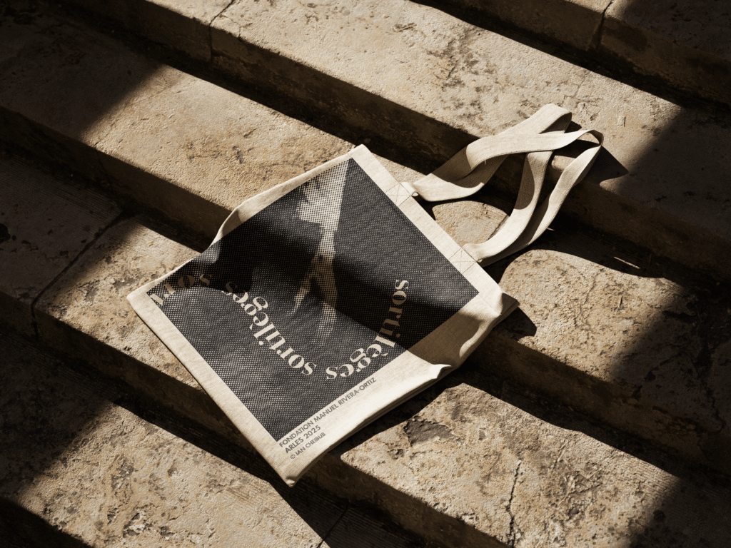 Tote bags en coton naturel sérigraphiés en une couleur, réalisés en collaboration avec Essentiel. Chaque visuel est conçu spécifiquement pour traduire l’identité de l’exposition : création graphique originale, composition typographique ou illustration. Pensés comme objets de diffusion et souvenirs de visite, ces tote bags prolongent l’expérience de l’exposition dans le quotidien.